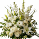 Honra la memoria de un ser querido con este arreglo funerario elegante y sereno, elaborado artesanalmente con flores naturales frescas cuidadosamente seleccionadas.